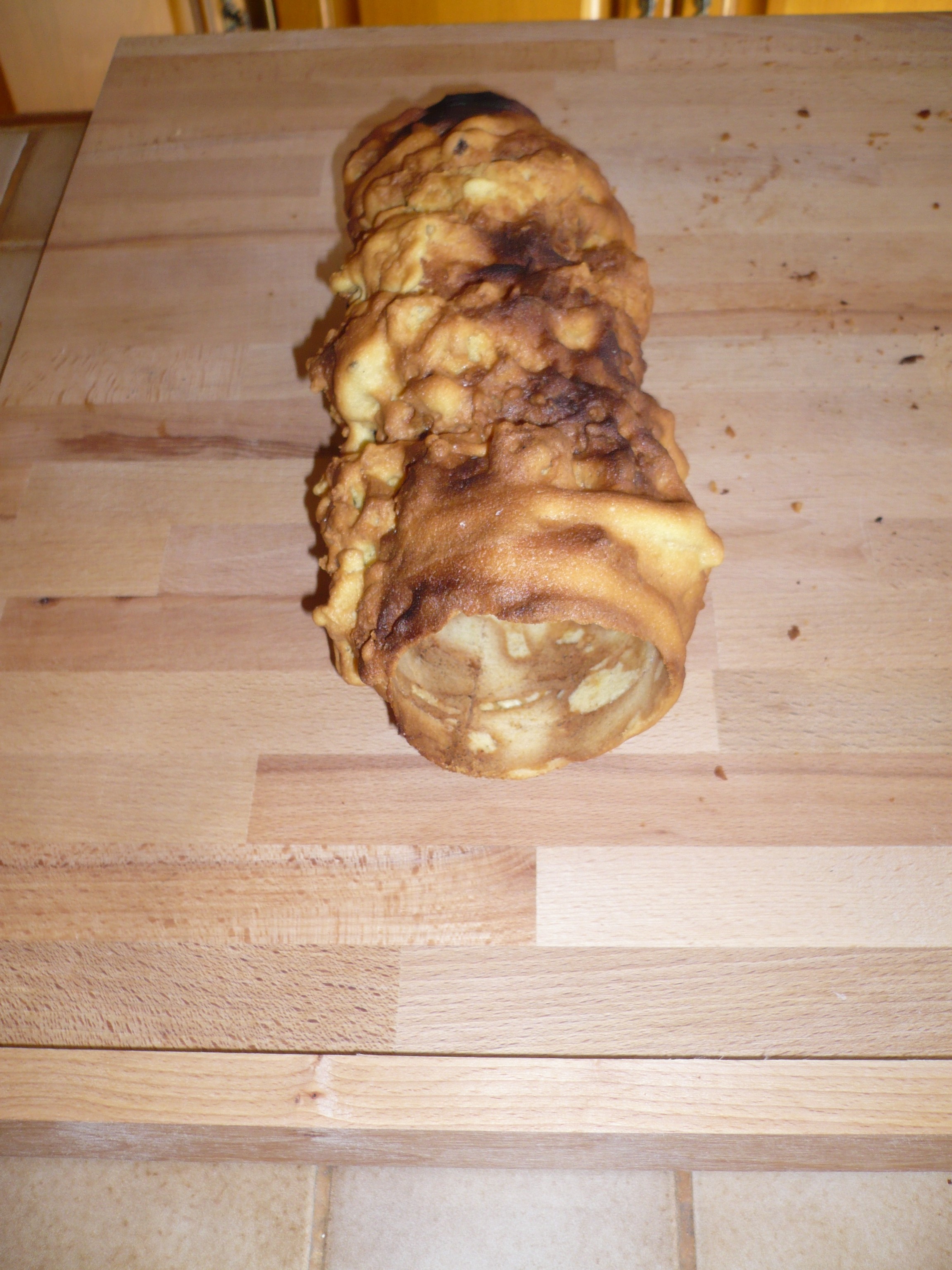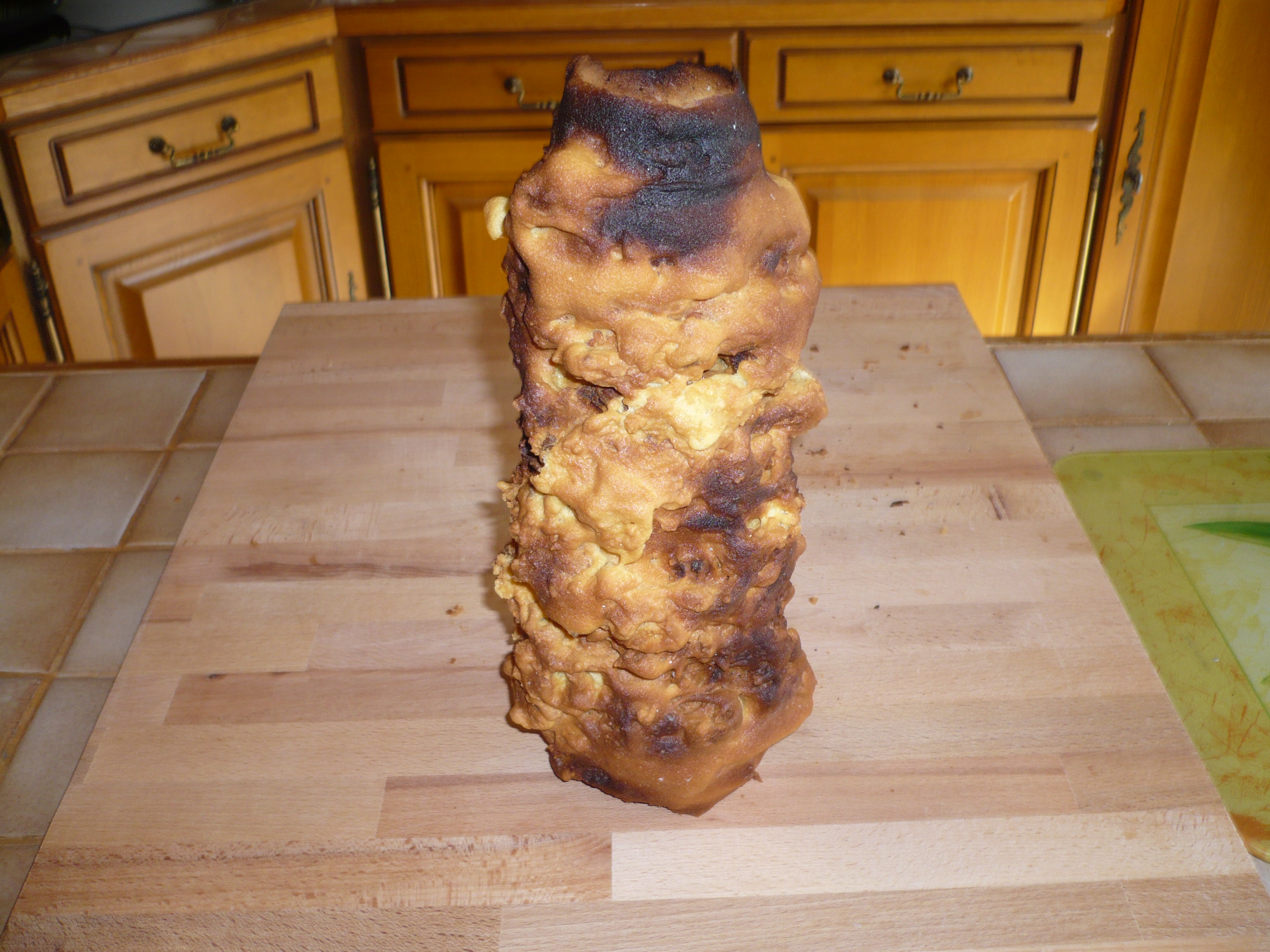 - On recouvre le cône de pâte à la louche en faisant plusieurs couches. A chaque couche, on laisse cuire selon votre convenance.